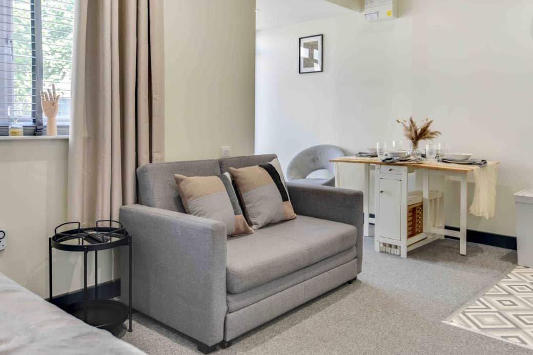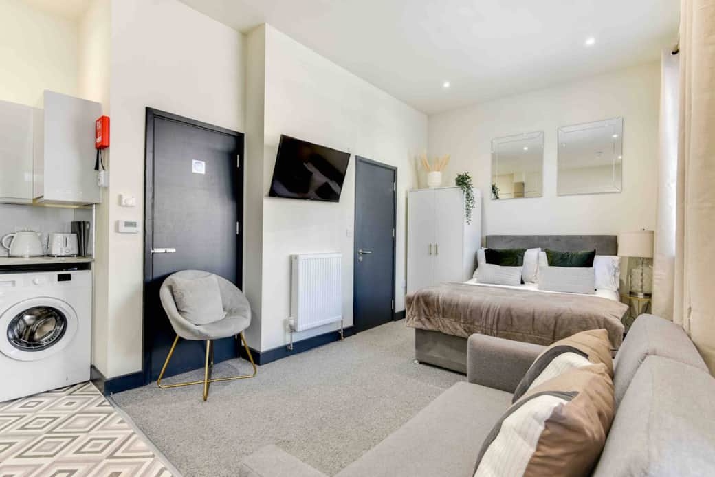Did you know life in Bognor Regis is normally sunny? It’s one of the sunniest places in the UK! Stunning brand new studio apartment, 300m from the beach. Suitable for a weekend away for a couple or small family or a professional working in the area. Free on road parking from studio and free car park opposite. ‘Flat 6’ Knighton Chambers has its own entrance, completely self contained, brand new, newly refurbished studio inc. the bathroom and kitchen. Comfortable double bed (New Oct 2021), a small sofa bed that will sleep 2 persons or two little ones, work desk/table, 32" Flat screen TV with Netflix, washing machine, fridge freezer, cooking facilities. Towels, shampoo and conditioner provided along with Cleaning and washing power if required. The flat is facing a road so light sleepers my be disturbed, most guests are not bothered by this. We have 3/4 apartments in the building so can accommodate larger groups together. Please note, there are currently some temporary gas works going on in the area and there are some temporary traffic lights outside the building which may cause a little extra buildup of traffic during busy times. Contact number provided to all guests for queries and emergencies. 300m from the beach and sea front. Free on road parking, close to seafront amusements, Tesco local and Butlins. Please note the postcode for the property may come up as PO19 2LN or PO21 2LQ. Location Ideal for sea swimming, walks, sailing, cycling & running. There is also a number of shops, cafes & restaurants right on the door step. The Butlins Holiday park, theatre & cinema is within walking distance. Goodwood is only 10 miles away and easy transport links to London, Brighton and Chichester with the train station less than a 12 min walk. The promenade a short walk along the beach front from the apartment and it stretches for 2.5 miles in total from Felpham (to the East) through to Aldwick (to the West). The promenade is flat and fabulous cycling and walking - there is an gaming arcade and crazy golf within 5 minutes walk along from the studio. With the beach, town, shops, restaurants & pubs on its doorstep it is in an ideal location and is also a great base for those who are visiting for Goodwood events. Other things to note * Please adhere to the 3pm check in and 11am check out times as this allows us the time needed to deep clean the apartment as per covid regulations. Please note keys will not be in the keysafe until check in time unless previously agreed. * This is a studio apartment therefore there is not a separate bedroom from the lounge & kitchen. It is open plan living. * There are three small steps up to the front door. * This is a self catering apartment although we do provide some tea, coffee and sugar. * FREE on road parking and free car park opposite (first come, first served). * Whilst we welcome little guests under the age of 2 to our apartment we do not supply a travel cot nor baby equipment. Please do bring your own. *NOTE: Guests are not permitted to charge an electric car/ scooters/ vehiclesfrom the studio.